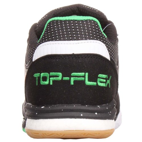 Topánky na futsal a halové športy Joma Top Flex Rebound 2304 patria medzi špičkové modely určené pre pravidelných a skúsených hráčov, ktorí hľadajú funkčné topánky poskytujúce skvelý výkon . Oproti klasickému modelu Top Flex majú pridané ďalšie tlmenie, ktoré dopĺňa kombináciu technológií. Zvršok je vyrobený z kože, ktorá prispieva k pružnosti, odolnosti a priedušnosti obuvi. Ponúka neuveriteľnú trakciu, ovládanie a výkon. Pre lepšie odvetrávanie je zvršok vybavený technológiou VTS, ktorá umožňuje prúdenie vzduchu dovnútra a von z topánky. Na špičke majú topánky výstuhu, ktorá má hráčovi umožniť pevný úder do lopty. Čo sa týka medzipodrážky, je tento model topánok na futsal vybavený revolučnou technológiou FULL DUAL PULSOR - systémom s dvojakou hustotou, ktorý tlmí dopad nohy. Na zvršku je medzipodrážka vyrobená z tvrdšieho phylonu, zatiaľ čo spodná vrstva je tvorená systémom REACTIVE BALL. Podrážka je vyrobená z gumy DURABILITY, ktorá je odolnejšia proti opotrebovaniu na krytých ihriskách.