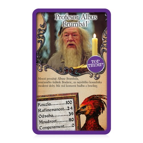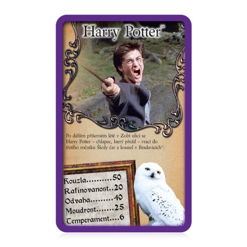 Oficiálne licencovaná kartová hra, ktorú si užijú kúzelníci aj muklovia. Svetový bestseller konečne v slovenskom jazyku! Vďaka tejto hre si oživíte fantastické príbehy z jednotlivých dielov s obľúbenými postavami. V každom diele na Vás čakajú iné postavy a ich charakterové kombinácie. Zistite, aký odvážny je Ron Weasley, aký mazaný je Rubeus Hagrid a akej úrovni mágie, vládne profesor Snape. Pripravte si kombináciu postáv na prekabátenie vašich protivníkov, objavte nové a vzrušujúce fakty vo svete Harryho Pottera. V plastovom púzdre ideálnom na cesty. Hráči: 2+, vek: 6+