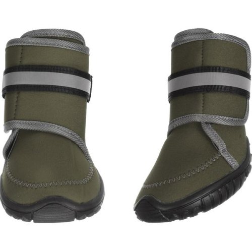 Neoprénové topánočky pre psov Flamingo Kajan spoľahlivo chránia psie labky pri vonkajších aktivitách aj v ťažšom teréne. Vďaka pevnej podrážke poskytujú ochranu pred horúcimi povrchmi, ľadom či ostrými kameňmi. Sú vodeodolné, ľahko sa upevňujú pomocou nastaviteľného suchého zipsu a majú pevnú protišmykovú podrážku, ktorá pomáha zamedziť pošmyknutiu na mokrých či klzkých povrchoch. Reflexné prvky zvyšujú viditeľnosť za šera alebo v tme. Topánky sa ľahko čistia ručným praním. Súprava obsahuje 2 ks topánočiek. Hlavné prednosti: