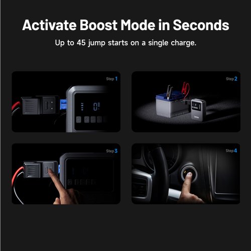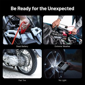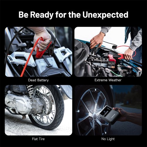 Kľúčové vlastnosti •Štartovací prúd 1200 A pre 12V vozidlá (autá, motorky, SUV, lode a pod.) •Integrovaný vzduchový kompresor pre pneumatiky áut, motoriek, bicyklov i športové vybavenie •Powerbanka s USB výstupom pre nabíjanie mobilov a elektroniky •LED svietidlo s viacerými režimami (osvetlenie, SK ľahko sa zmestí do kufra auta • Spoľahlivý parťák na cesty aj do každodennej prevádzky • Bezpečnostné funkcie: Ochrana proti skratu, ochrana proti spätnému prúdu, ochrana proti prepätiu, ochrana proti nadmernému prúdu, ochrana proti prehriatiu, ochrana proti prepólovaniu, ochrana proti nadmernému vybitiu