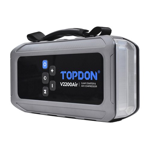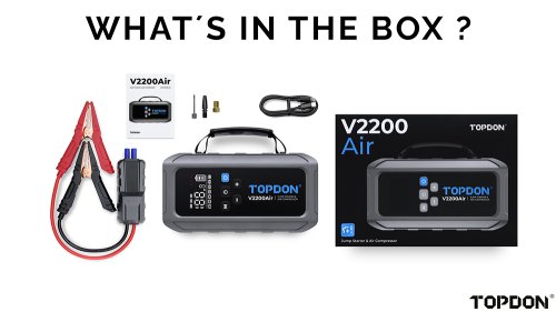 TOPDON Car Jump Starter JumpSurge V2200air - 2 v 1 štartér a vzduchový kompresor Predstavujeme V2200air, špičkové multifunkčné zariadenie pre každého vodiča. S týmto všestranným pomocníkom ľahko naštartujete vozidlo, nafúknete pneumatiky, nabijete elektroniku a osvetlíte okolie. Vďaka špičkovému štartovaciemu prúdu 2200 A zvládne počas 2 sekúnd naštartovať motory až s objemom 8.0 l (benzín) alebo 6.0 l (diesel). Integrovaný vzduchový kompresor zvládne pneumatiky nafúknuť za menej ako 3 minúty. S V2200air ste pripravení na každú situáciu, nech vás stretne čokoľvek.