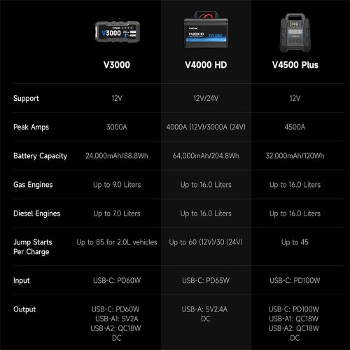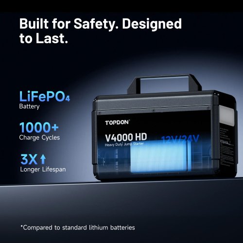 TOPDON V4000HD - profesionálny 12V/24V štartovací zdroj pre osobné a nákladné vozidlá TOPDON V4000 HD je špičkový štartovací zdroj navrhnutý pre neštandardné podmienky. Tento profesionálny model zvláda 12V aj 24V systémy a je určený nielen pre osobné automobily, ale aj pre nákladné vozidlá, autobusy, stavebnú techniku a ťažké pracovné vozidlá.