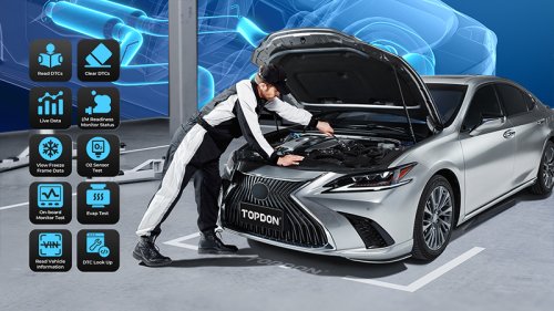 Prístup k 8 službám údržby, technológii AutoVIN, testovaniu výkonu vozidla a dokonca aj k obojsmernému ovládaniu prostredníctvom telefónu. Medzi ďalšie výhody systému TopScan Pro patrí sprievodca opravami DTC v celom systéme a pripravenosť k I/M jedným kliknutím.