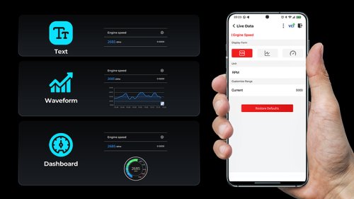 Čo ešte vie TopScan Pro? Zobrazenie dátových tokov vo forme textu, grafu alebo grafu podobného prístrojovému panelu. To pomáha používateľom intuitívne sledovať zmeny dát v čase. Použitie funkcie "Kombinovať" pre grafické zobrazenie až 4 dátových tokov v jednom rozhraní umožňuje používateľom vyhodnocovať výkonnosť pomocou porovnávacích dát a robiť presné a efektívne rozhodnutia.