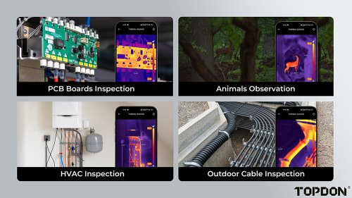 TOPDON termálna infra kamera TS001 Termokamera TS001 s dlhým ohniskom pre systém Android bola navrhnutá na zachytenie ostrých snímok aj na veľmi krátke vzdialenosti, napríklad pri inšpekcii dosiek plošných spojov. Vďaka infračervenému snímaču s vysokým rozlíšením 256 × 192 pixelov a plynulej snímkovej frekvencii 25 Hz dokáže precízne zachytiť každý detail. Nastaviteľný 9mm objektív umožňuje pokrytie vzdialeností od 0,1 do 500 metrov, čo zaisťuje širokú škálu využitia, vrátane inšpekcií budov, pozorovania zvierat, opráv automobilov alebo kontroly dosiek plošných spojov.
