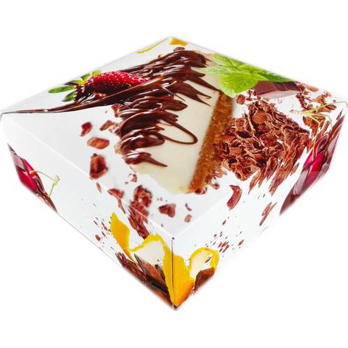 „Krabica z kvalitného silnejšieho papiera s farebnou potlačou, určená na prenášanie väčších tort, rolády, cukroviniek a rôznych ďalších druhov pečiva. Rozmery: 26 x 10 cm“.