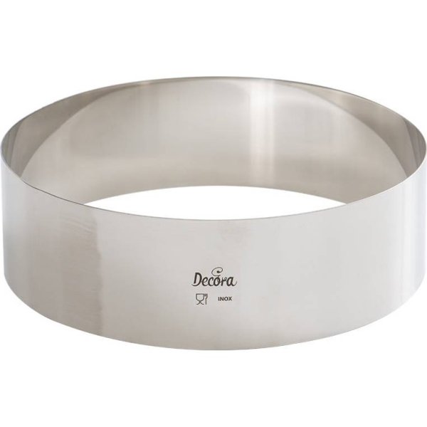Tortový ráfik vyrobený z nerezovej ocele na prípravu pečených i nepečených dezertov. Rozmery 22 x 6 cm.