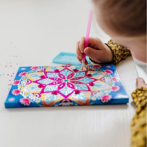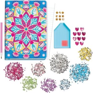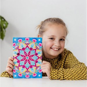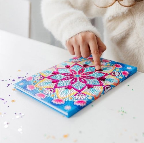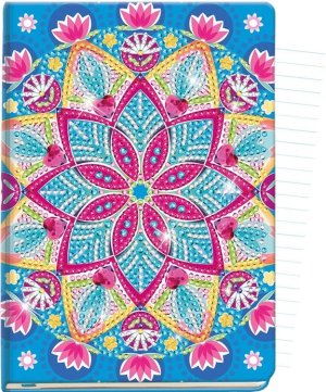 Blok A5 s tvrdými doskami s originálnou výzdobou pomocou farebných kamienkov. Relaxácia a trblietavý výsledok to v sebe snúbia diamantové obrázky. Postup: