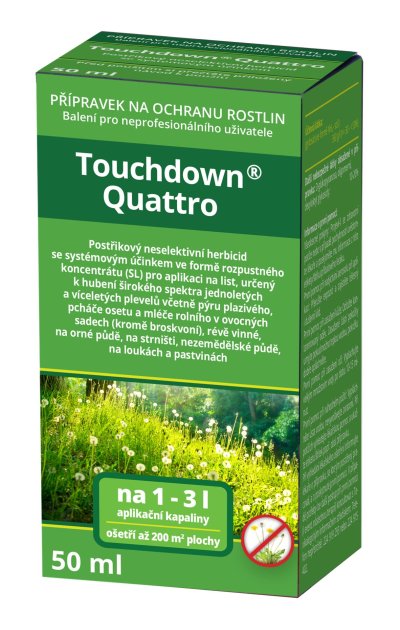 Touchdown Quattro obsahuje účinnú látku glyphosate, ktorá je prijímaná listami. Prípravok pôsobí neselektívne ako listový systematický herbicíd proti širokému spektru jednoročných a viacročných burín vrátane pýru plazivého, pichliača osetku a mlieča roľného pred sejbou alebo na strnisko. Používa sa v ovocných sadoch, viniciach na ornej i nepoľnohospodárskej pôde.