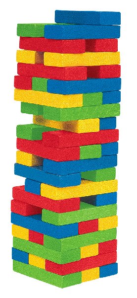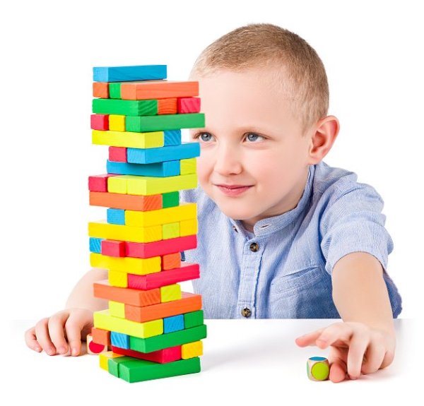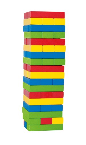 Ako veľmi si šikovný? Klasická stolová hra, ktorá ponúka mnoho zábavy a vtipných okamihov. Na stole sa postaví veža zo všetkých kameňov. Hráči sa striedajú v poradí a postupne sa snažia opatrne jeden kameň z veže vytiahnuť bez toho, aby veža spadla. Prehráva ten hráč, ktorému veža spadne! Na stole sa postaví veža zo všetkých kameňov (každé poschodie z 3 kameňov) a hráči sa striedajú v poradí, hodia kockou a podľa farby, ktorá padne sa snaží opatrne daný kameň z veže vytiahnuť bez toho, aby veža spadla. Potom, čo kameň vytiahnu, položí ho opäť hore na vežu. Vždy sa musí nové poschodie dokončiť, než sa začne stavať iné a je dovolené používať iba jednu ruku! Víťazí ten hráč, ktorý ako posledný odoberie z veže jeden kameň a opäť ho položí nahor skôr, než veža spadne! Drevená veža je vysoká cca 27 cm. Rozmer jedného dielika je 7,5 x 2,5 x 1,5 cm. Hra obsahuje: 50 farebných drevených kameňov (v tvare kvádra), kocku a pravidlá hry.