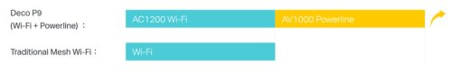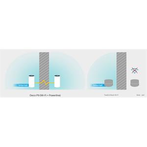 Deco P9 kombinuje duálne Wi-Fi a powerline pre vytvorenie silnejšej mesh siete. Technológia Powerline využíva elektrické rozvody vášho domu na vytvorenie silnejšieho prepojenia medzi jednotkami Deco tým, že znižuje dopad stien a iných prekážok na signál a poskytuje ešte vyššie rýchlosti siete a skutočne bezproblémové pokrytie.