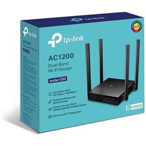 Archer C54 je základný a kompaktný AC1200 Dual-Band router značky TP-Link, ktorý obsahuje 4x 10/100Mbps LAN, 1x 10/100Mbps WAN a 4 fixné antény. Bezdrôtová časť vie pracovať v dvoch pásmach zároveň a to rýchlosťou 300Mbps v 2.4GHz pásme a 866Mbps v pásme 5GHz. Router podporuje IPv4 aj najnovšie IPv6 routovanie. Router okrem najviac používaného módu AP Router podporuje aj režimy Access point a Range Extender.