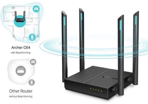 Archer C64 je veľmi kompaktný Dual-Band router značky TP-Link, ktorý obsahuje 4x 10/100/1000Mbps LAN, 1x 10/100/1000Mbps WAN a 4 fixné antény. Bezdrôtová časť vie pracovať v dvoch pásmach zároveň a to rýchlosťou 400Mbps v 2.4GHz pásme a 866Mbps v pásme 5GHz. Router podporuje IPv4 aj najnovšie IPv6 routovanie. Router okrem najviac používaného módu AP Router podporuje aj režim Access point.