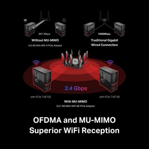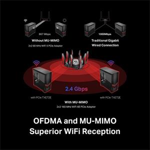 Bezkonkurenčná trojpásmová rýchlosť - zvýšenie celkovej rýchlosti až na 2402 Mb/s (6 GHz) + 2402 Mb/s (5 GHz) + 574 Mb/s (2,4 GHz)