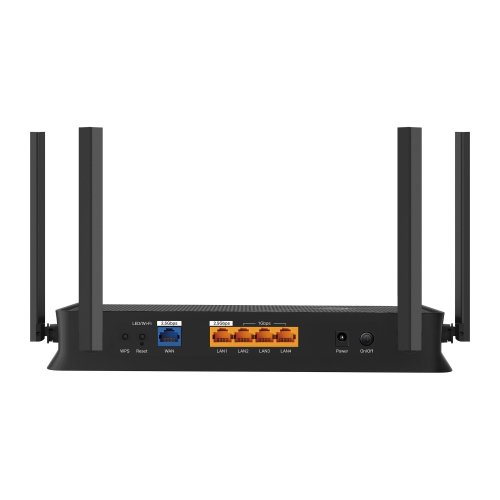 Hardvérové vlastnosti * Rozhranie: 1× 2.5GE WAN port, 1× 2.5GE LAN port, 3× Gigabit LAN porty, 1× USB 3.0 Port * Tlačidlá: Zadné: Power, Reset, WPS, LED/Wi-Fi * Napájanie: 12V/2A (v závislosti na verzii produktu ) * 153 × 47.6 mm