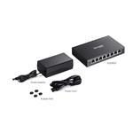 Hardwarové parametre: * Rozhranie: 8× 10/100/1000 Mbps PoE+ RJ45 Ports (support 802.3af PoE and 802.3at PoE+) * Počet ventilátorov: Bez ventilátorov * Inštalácia: stolný, na stenu * Fyzický bezpečnostný zámok: Áno * Napájanie : Napájanie: 53,5 V DC / 1,31 A) * Rozmery (Š × H × V): 6.2 × 4.0 × 1.0 in (158 × 100.7 × 25.4 mm) * Ochrana proti prepätiu: ±6 kV