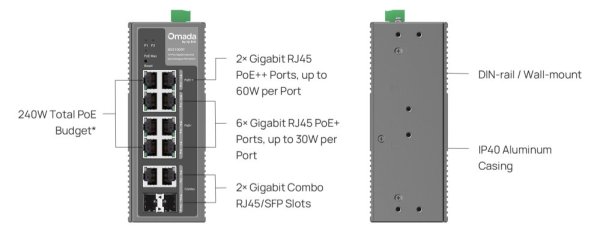 Omada 10portový gigabitový priemyselný Easy Managed switch so 6 portami PoE+ a 2 portami PoE++