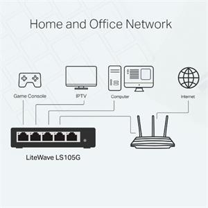 5 10/100/1000Mbps, Auto-Negotiation, Auto-MDI/MDIX Ports