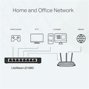 8 10/100/1000Mbps, Auto-Negotiation, Auto-MDI/MDIX Ports