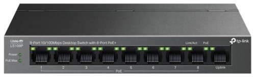 TP-Link PoE Switch LS109P je nemanagovateľný PoE Switch s 9x 10/100Mbps LAN portami z čoho na 8 portoch podporuje PoE 802.3af/at až 30W/port. Celkový PoE budget switcha je 63W. Switch umožňuje aj PoE na vzdialenosť 250m pri prepnutí špeciálneho prepínača, ktorý spôsobí poníženie linkovej rýchlosti na PoE portoch na 10Mbps, čo je dostačujúce na prenos obrazu z kamier. Ďalšou funkciou je PoE auto recovery, ktorá automaticky reštartuje nereagujúce zariadenia napájané pomocou PoE alebo port isolation.