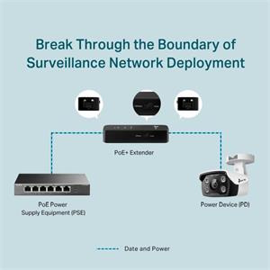 Fast Ethernet PoE+ Extender *Rozširuje sieťové pripojenie PoE/PoE+ o ďalších 100 m – 250 m (režim 10 Mb/s) od zariadenia zdroja napájania PoE *V súlade so zariadeniami 802.3af/at a podporuje maximálny výstupný výkon 20W *2 * Porty 10 /100 Mbps zaisťujú rýchlejší prenos *Plug-and-Play, nevyžaduje žiadnu konfiguráciu