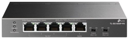 TL-SG1005P-PD je nemanagovateľný gigabitový PoE switch s 5x 10/100/1000Mbps LAN porty z ktorých 1 port podporuje PoE-IN 802.3af/at/bt a zvyšné 4 podporujú PoE-OUT 802.3af/at. Switch umožňuje aj PoE na vzdialenosť 250m pri prepnutí špeciálneho prepínača, ktorý spôsobí poníženie linkovej rýchlosti na PoE portoch na 10Mbps, čo je dostačujúce na prenos obrazu z kamier. Ďalšou funkciou je PoE auto recovery, ktorá automaticky reštartuje nereagujúce zariadenia napájané pomocou PoE.