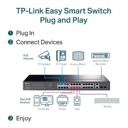 TL-SG1428PE je managovateľný Easy Smart rackmount PoE switch značky TP-Link s 26 Gigabit LAN portami a dvoma plnohodnotnými SFP portami. Prvých 24 portov podporujú 802.3af/at PoE s maximálnou spotrebou 30W/port a celkovým PoE budgetom 250W. Ďalšie 2 porty sú Gigabitové, slúžiace ako uplink alebo na pripojenie ďalších zariadení.
