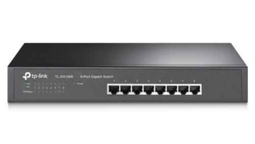 TL-SX1008 - 8-Portový 10G Desktop/Rackmount Switch FUNKCIE - 8x 10 Gbps portov: 8× 10 gigabitové porty odomykajú najvyšší výkon šírky pásma 10G / Multi-Gig šírka pásma poskytuje prepínaciu kapacitu až 160 Gb/s - Bleskovo rýchle pripojenie: Poskytuje bleskové pripojenie k 10G NAS, serveru, 10G PCIe adaptéru/NIC, hernému počítaču, 2,5G/5G/10G WiFi 6 AP, 8K videu a ďalším - Ideálne pre rôzne scenáre: Postavené pre bleskurýchle pripojenie v obchodných a domácich kanceláriách, pracovných staniciach, LAN večierkoch a domácej zábave. - Prevádzka s nízkou hlučnosťou: Inteligentné nastavenie rýchlosti ventilátora zaisťuje minimálny hluk, ktorý pri používaní neodvádza pozornosť - Plug and Play: Umožňuje ľahké nasadenie bez potreby technika TECHNICKÉ VLASTNOSTI Rozhranie: 8x 1000Mbps/1G/2,5G/5G/10G Auto Negotiation/Auto MDI/MDI-X Switching kapacita: 160 Gbps Rýchlosť odovzdávania paketov: 119 Mpps Tabuľka MAC adries: 32K Paketová vyrovnávacia pamäť: 16 Mbit Jumbo frame: 10 KB Zdroj napätia: 100-240V/0,8A Max. spotreba energie: 28,4W Rozmery: 294 × 180 × 44 mm Počet ventilátorov: 1x Inštalácia: Desktop / Rackmount Certifikácia: CE, RoHS, FCC