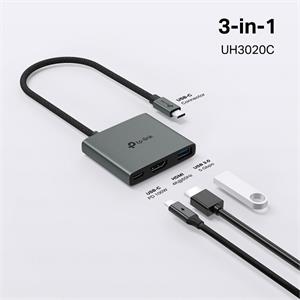 Hub 3 v 1 USB-C: UH3020C mení jeden port USB-C na 3 porty s HDMI 4K pri 60 Hz, 100 W Power Delivery, 1× dátový port USB-A.