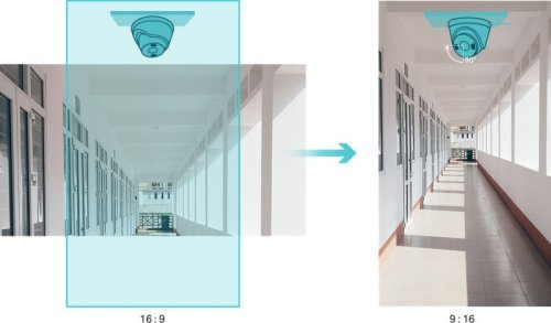 Režim chodby: Umožňuje zmeniť pomer strán obrazu z 16:9 na 9:16 a pomáha tak sledovať dlhé a úzke oblasti