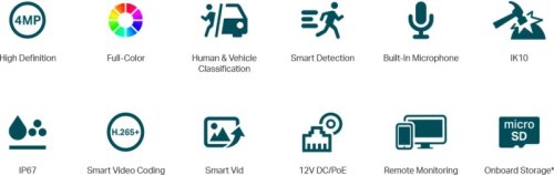 VIGI C240 (4mm) je 4 megapixlová vonkajšia DOME kamera značky TP-Link s fixným objektívom 4 mm, bielym svetlom a IR prísvitom do vzdialenosti 30 ma ethernetovým portom s podporou PoE. Kamera má max. rozlíšenie 2560 × 1440 px (pri 30 fps), pozorovací uhol 80 °, 2 nezávislé streamy, krytie IP67, digitálny WDR snímač, audio mikrofón, slot na microSD kartu (až 256 GB), podporu ONVIF a kodeku H. 264 (+) a H.265 (+). Kamera vďaka väčšej citlivosti podporuje tzv. Full-Color farebný obraz počas celej noci.