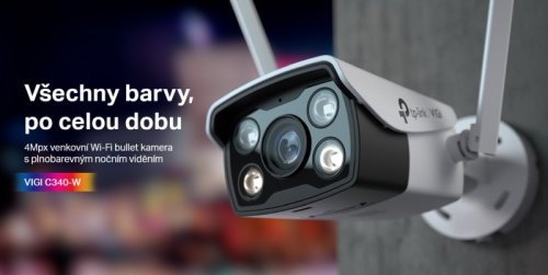 VIGI C340-W(4mm) je 4 megapixelová vonkajšia WiFi bullet kamera značky TP-Link s fixným objektívom 4 mm, bielym svetlom a IR prísvitom do vzdialenosti 30 m, ethernetovým portom a 802.11b/g/n WiFi s dvoma fixnými anténami. Kamera má max. rozlíšenie 2560 × 1440 px (pri 30 fps), pozorovací uhol 79 °, 2 nezávislé streamy, krytie IP66, digitálny WDR snímač, obojsmerné audio (mikrofón aj reproduktor), slot na microSD kartu a podporu ONVIF a kodeku H.264 (+) a H.265 (+). Kamera vďaka väčšej citlivosti podporuje tzv. Full-Color farebný obraz počas celej noci.