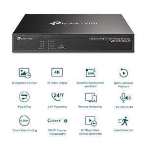 TP-Link VIGI NVR1004H-4P VIGI 4-kanálový PoE+ sieťový videorekordér