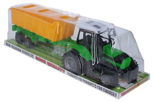 Poriadny traktor s objemnou vlečkou nesmie chýbať žiadnemu farmárovi. Dĺžka traktora s vlečkou je 53cm.