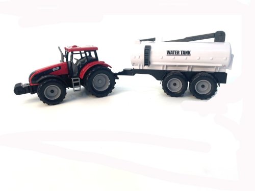 Tento skvelý traktor s prívesom plným sena je ideálnou hračkou pre malých farmárov! Traktor o veľkosti 45×9×7,5 cm je vybavený pohonom na zotrvačník, čo znamená, že stačí traktor zatlačiť, a ten sa sám rozbehne.