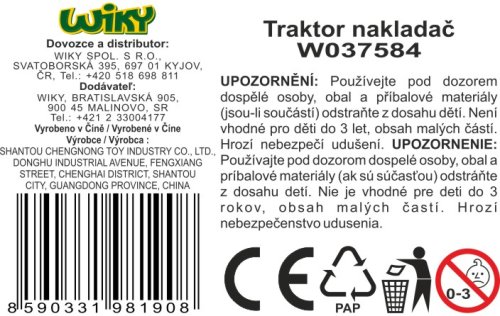 Traktor nakladač. Veľkosť 27 cm. Voľné kolesá.