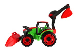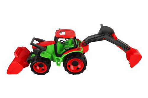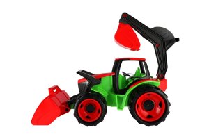 Kvalitne spracovaný traktor s moderným designom. Bol navrhnutý a vyrobený tak, aby zodpovedal požadovanému modernému vzhľadu, funkčnosti, odolnosti, kvalitnému spracovaniu, maximálnej hracej hodnote. Veľkosť 63x42x28 cm. Vyrobené v SR.