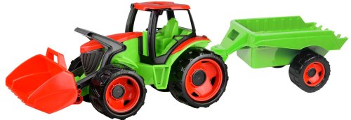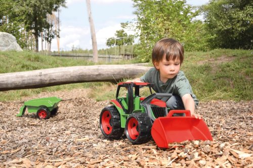 Kvalitne spracovaný traktor s nakladacou lyžicou a prívesom bol navrhnutý a vyrobený tak, aby zodpovedal požadovanému modernému vzhľadu, funkčnosti, odolnosti, kvalitnému spracovaniu, maximálnej hracej hodnote.