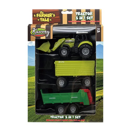Pripravte sa na poriadnu jazdu na farme! Tento parádny traktor so svetelnými a zvukovými efektmi poteší každého malého farmára. Vďaka voľnému chodu je ľahko ovládateľný - stačí ho postrčiť a vyrazí vpred. Súčasťou balenia sú dve odpojiteľné vlečky, ktoré je možné zapojiť za traktor a prevážať všetko, čo je na statku potrebné. Pre svetelný a zvukový efekt je potrebných 3 ks batérií typu AG13, ktoré sú vo vnútri výrobku.