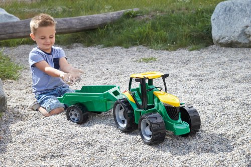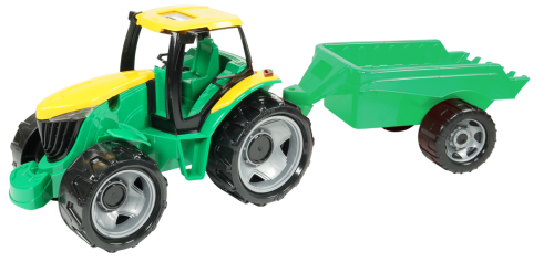 Kvalitne spracovaný traktor s moderným designom. Bol navrhnutý a vyrobený tak, aby zodpovedal požadovanému modernému vzhľadu, funkčnosti, odolnosti, kvalitnému spracovaniu, maximálnej hracej hodnote. Veľkosť 94x28x35cm. Vyrobené v SR.