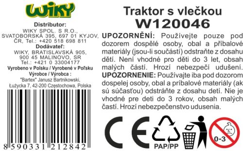 Traktor s vlečkou. Voľné kolesá. Vlečka 35x18, 5x13 cm. Traktor 31x19x24 cm