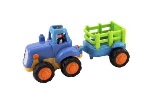 Traktor s prívesom ocení každý malý poľnohospodár. Veľkosť cca 16 cm, jazdí na zotrvačník. Rozmery výrobku 16 x 7 x 7 cm. Vhodné pre deti od 18 mesiacov.