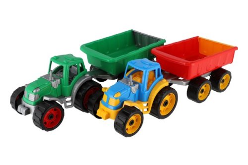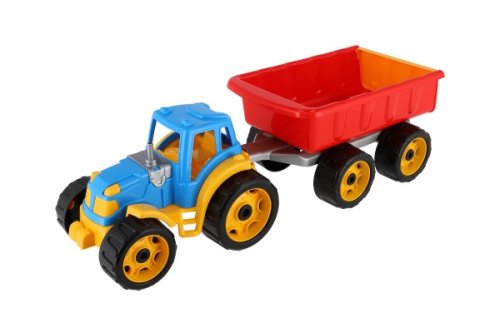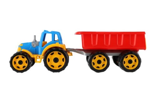 Traktory sú bezpochyby jedny z najobľúbenejších hračiek, ktoré potešia malých aj veľkých. Oranžový traktor so sklápacím prívesom má veľkosť 54 cm. Vhodný na hru doma aj vonku. Vhodný pre deti od 3 rokov.