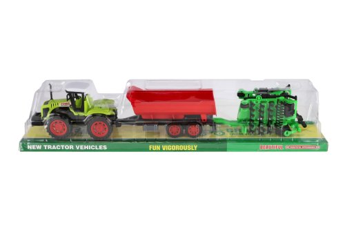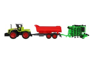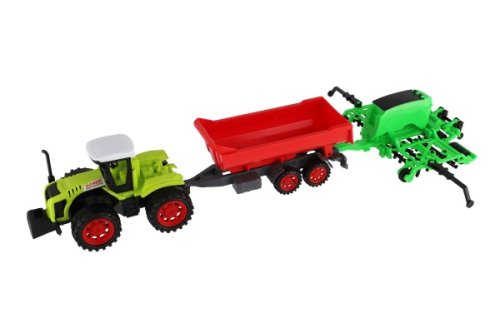 Pre každého malého poľnohospodára je nepostrádateľným, všestranným pomocníkom traktor s vlekom as bránami. Traktor je na zotrvačník. Rozmery balenia 10 x 12 x 59 cm. Vhodné pre deti od 3 rokov.