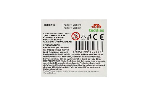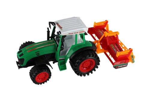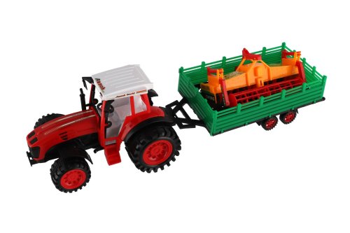 Pre každého malého poľnohospodára je nepostrádateľným, všestranným pomocníkom traktor s prívesom. Traktor je na zotrvačník a je veľkosti 46 cm. Nekonečná práca na farme môže začať. Vlek s kombajnovým valcom je možné odpojiť. Rozmery balenia 19 x 16 x 55 cm. Vhodné pre deti od 3 rokov.