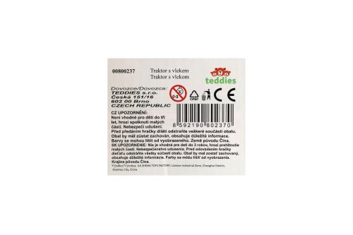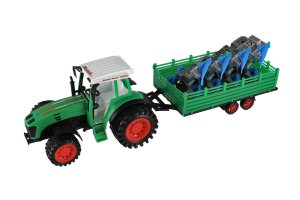 Pre každého malého poľnohospodára je nepostrádateľným, všestranným pomocníkom traktor s vlekom. Traktor je na zotrvačník a je veľkosti 53 cm. Nekonečná práca na farme môže začať. Vlek je možné odpojiť. Rozmery balenia 18 x 17 x 55 cm. Vhodné pre deti od 3 rokov.