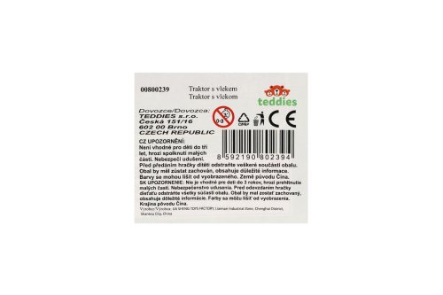 Pre každého malého poľnohospodára je nepostrádateľným, všestranným pomocníkom traktor s prívesom. Traktor je na zotrvačník a je veľkosti 52 cm. Nekonečná práca na farme môže začať. Vlek s rotavatorom je možné odpojiť. Rozmery balenia 19 x 17 x 55 cm. Vhodné pre deti od 3 rokov.