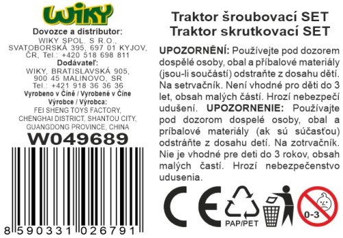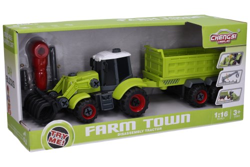 Traktor skrutkovací nakladač s návesom set. Rozmery s návesom 40x13,5x12 cm. Obsah balenia - traktor, náves, sada náradia na skrutkovanie. Na zotrvačník.
