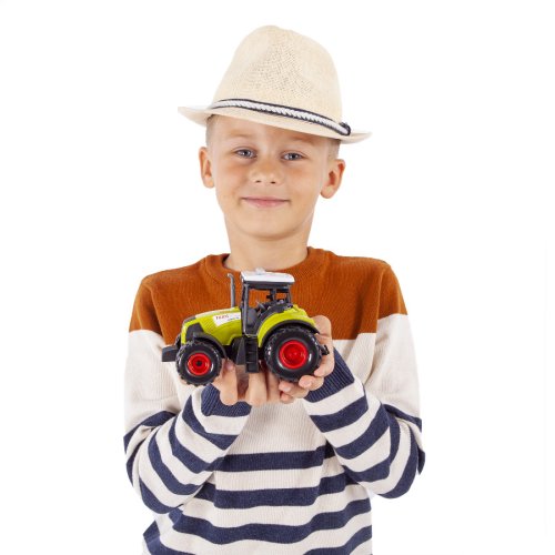 Moderný plastový traktor so zvukom a svetlom, hračka z kolekcie Moja malá farma. Nepostrádateľný pomocník pre každého malého farmára! Traktor jazdí na zotrvačník a jeho dĺžka je 14 cm. Stlačením tlačidiel traktor vydáva reálne zvuky. Traktor vyžaduje 3 ks batérií typu AG13/LR44, ktoré sú súčasťou balenia.