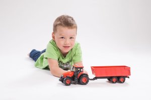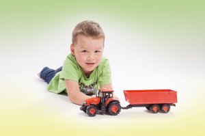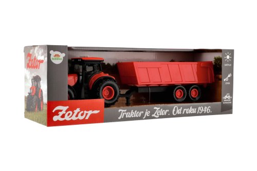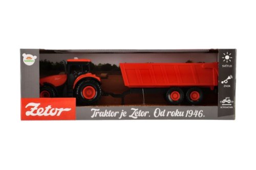 Krásny model poľnohospodárskeho traktora Zetor s dlhoročnou tradíciou, ktorú musí milovať snáď každý. Vyrazte na pole s poriadnym traktorom so svetlom a zvukom! Traktor s valníkom je nepostrádateľný pomocník pre každého malého farmára! Valník môžeš jednoducho odpojiť a traktor využiť na ďalšie práce. Traktor jazdí na zotrvačník. Stlačením tlačidiel traktor vydáva reálne zvuky a svietia mu svetlá. Hračka je na batérie 3x AG13, ktoré sú súčasťou balenia. Veľkosť traktora s valníkom: 36 cm Rozmer krabice: 39x13x13 cm Vhodné pre deti od 3 rokov